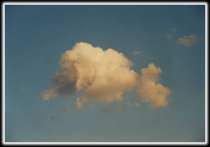 | On a beautiful spring day in 2002, Mr. Williams took a photograph of a unique cloud formation. We often look up at the sky and see images of animals and people but we rarely see them with such color and clarity! This picture was taken in Northampton, MA. If you look at it carefully you can actually see the poodle carrying a black/brown kitten in its mouth. |