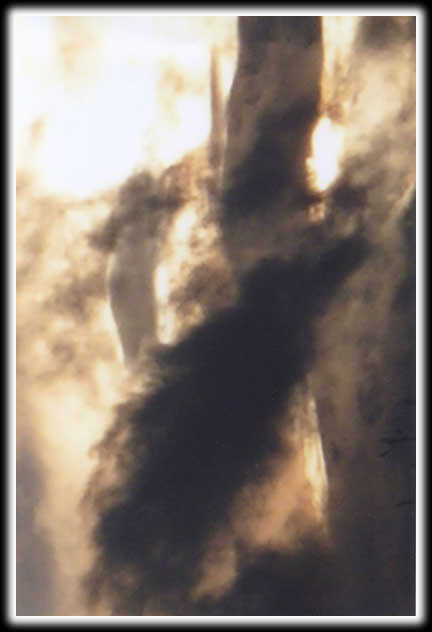 | There are two outstanding figures in this photograph. The woman with the urn and another woman streched across the front of the photo dressed in a long black garment with a black hat on. You will also see many figures in light and dark hues. |